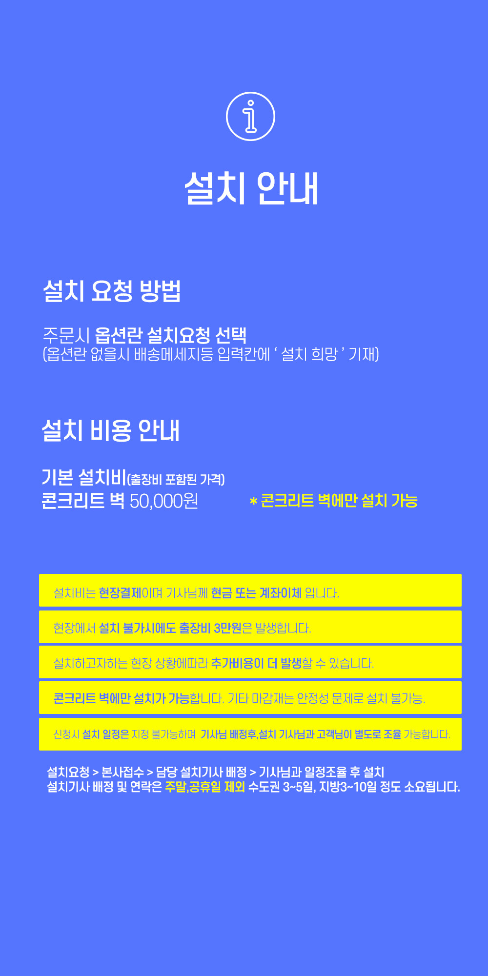 설치의뢰(콘크리트5만원/현장결제)